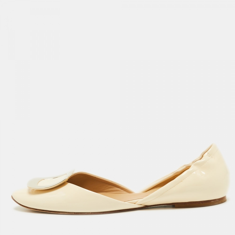 Roger Vivier Cream Patent Leather D'orsay Ballet Flats Size 38