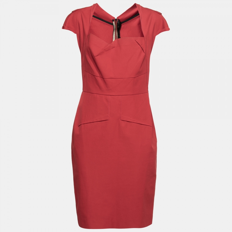 Pre Owned فستان رولان موريه ميرثا قطن أحمر أكتاف مطوية مقاس كبير (لارج)