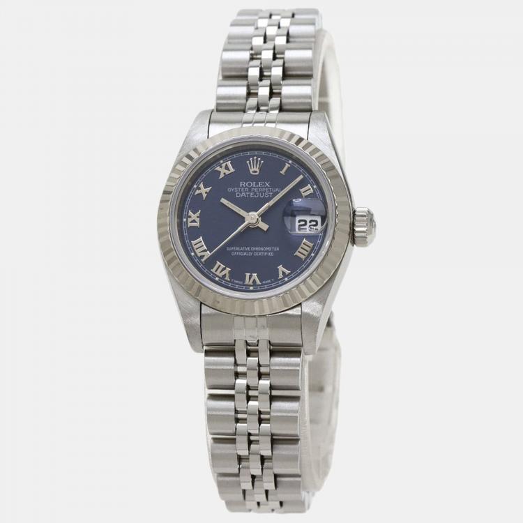 Pre Owned Rolex Blue Stainless Steel Datejust 69174 Women's Wristwatch 26 mm