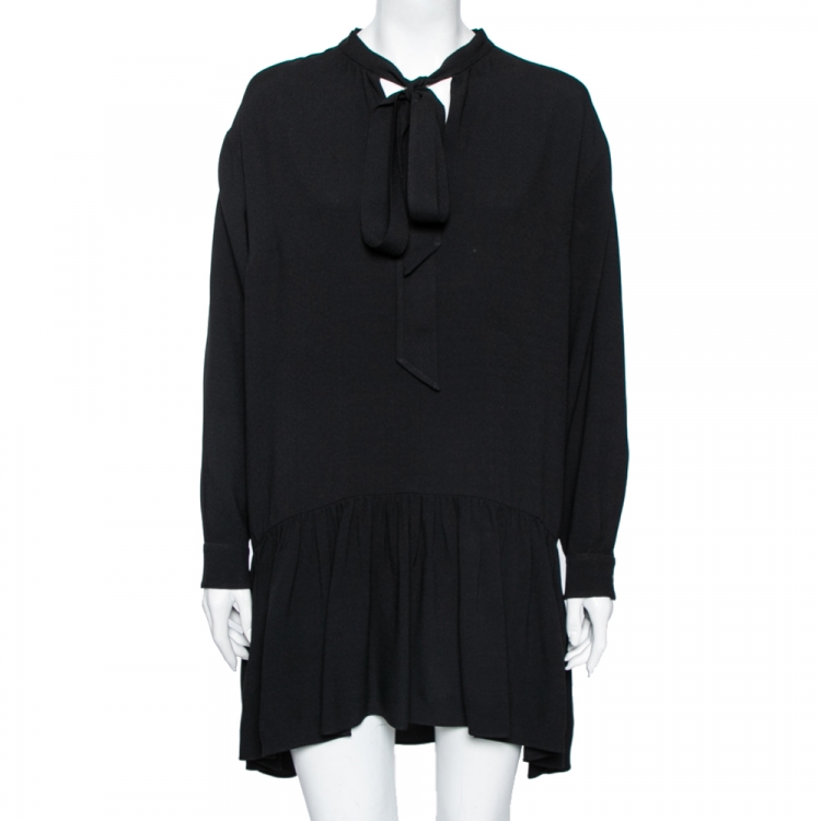 مملوكة مسبقًا Saint Laurent Black Crepe Neck Tie Detailed Long Sleeve Dress L