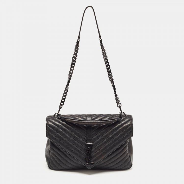 Saint Laurent Black Matelassé Leather Large College Top Handle Bag