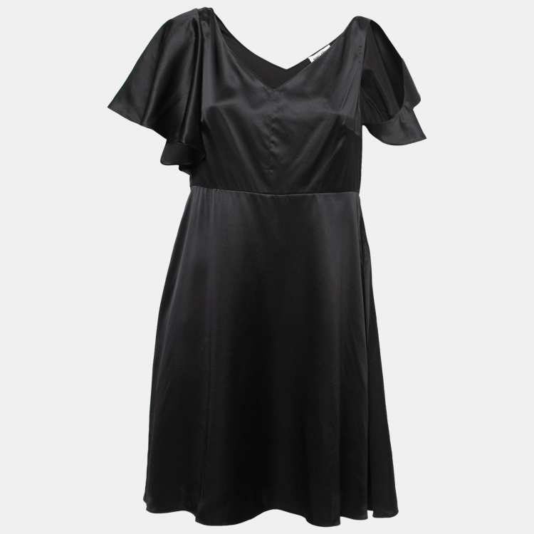 مملوكة مسبقًا Saint Laurent Black Silk Satin Cut Out Ruffle Sleeve Short Dress L