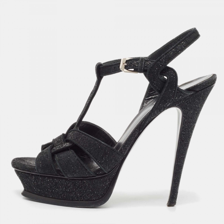 مملوكة مسبقًا صندل سان لوران تريبيوت شامواه مزخرف أسود مقاس 39