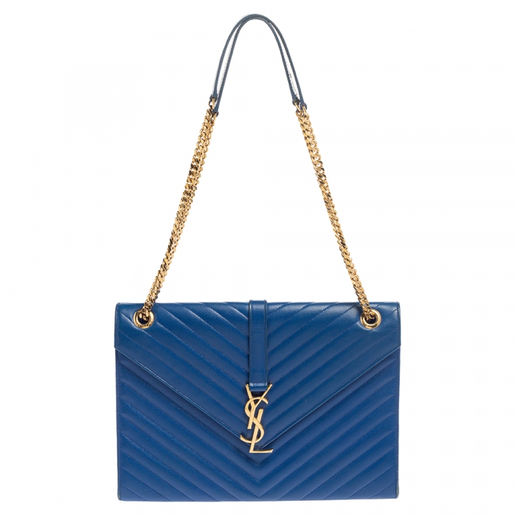 Pre Owned حقيبة سان لوران كاساندري كبيرة قلاب جلد ماتيلاس أزرق
