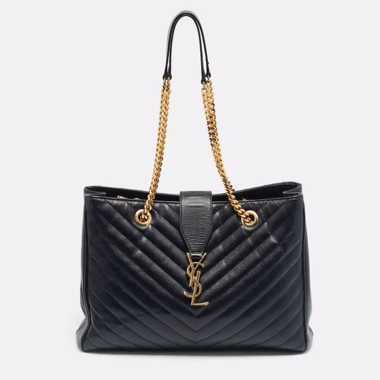 حقيبة يد سان لوران بوكساندرا جلد شيفرون مونوغرامي سوداء بسلسلة