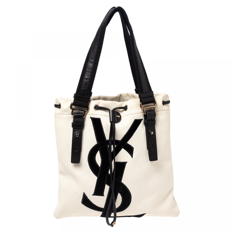 حقيبة يد توتس سان لوران كاهالا جلد وكانفاس أسود/كريمي