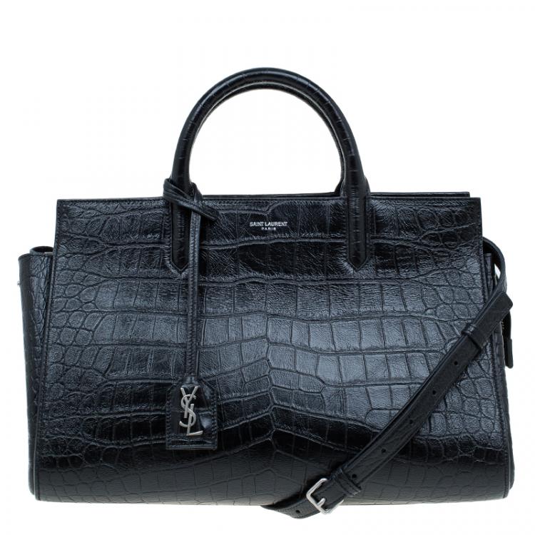 حقيبة يد سان لوران باريس ساك دي جور كارياول جلد بنقوش جلد تمساح سوداء صغيرة