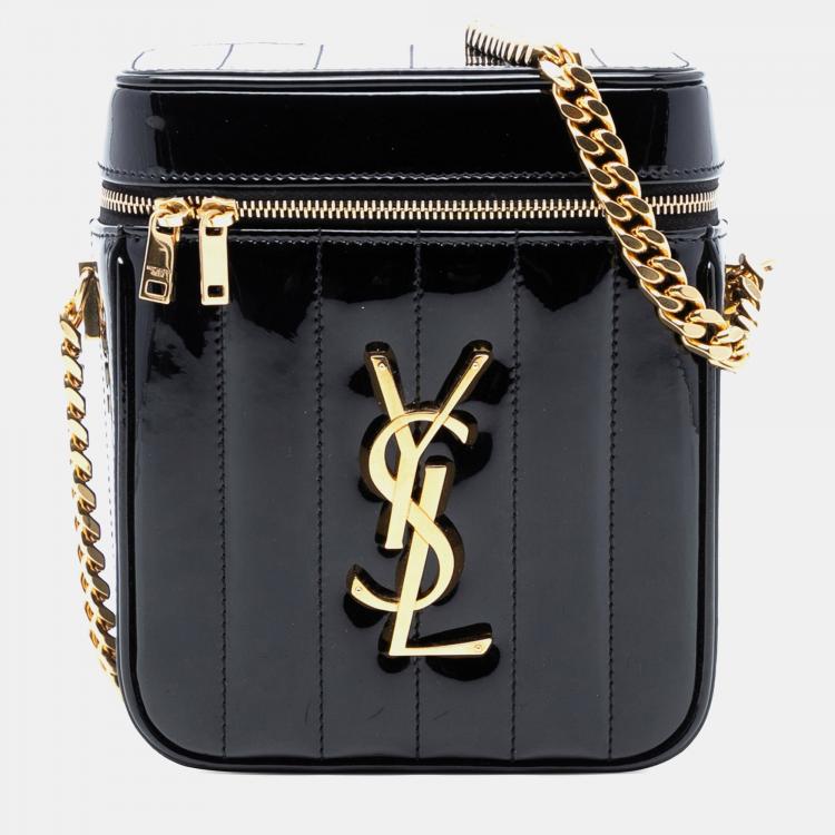 Pre Owned حقيبة سان لوران باريس فيكي فانتي جلد أسود لامع