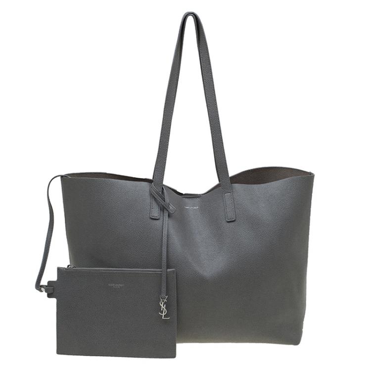 Pre Owned حقيبة يد شوبر سان لوران باريس شوبر جلد رصاصية