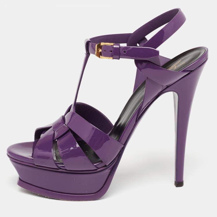 مملوكة مسبقًا صندل سان لوران تريبوت جلد بنفسجي لامع نعل سميك مقاس 37.5