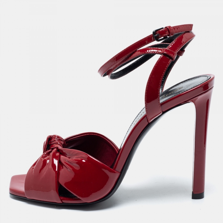 Saint Laurent Red Patent Leather Amy Ankle Strap Sandals Size 36