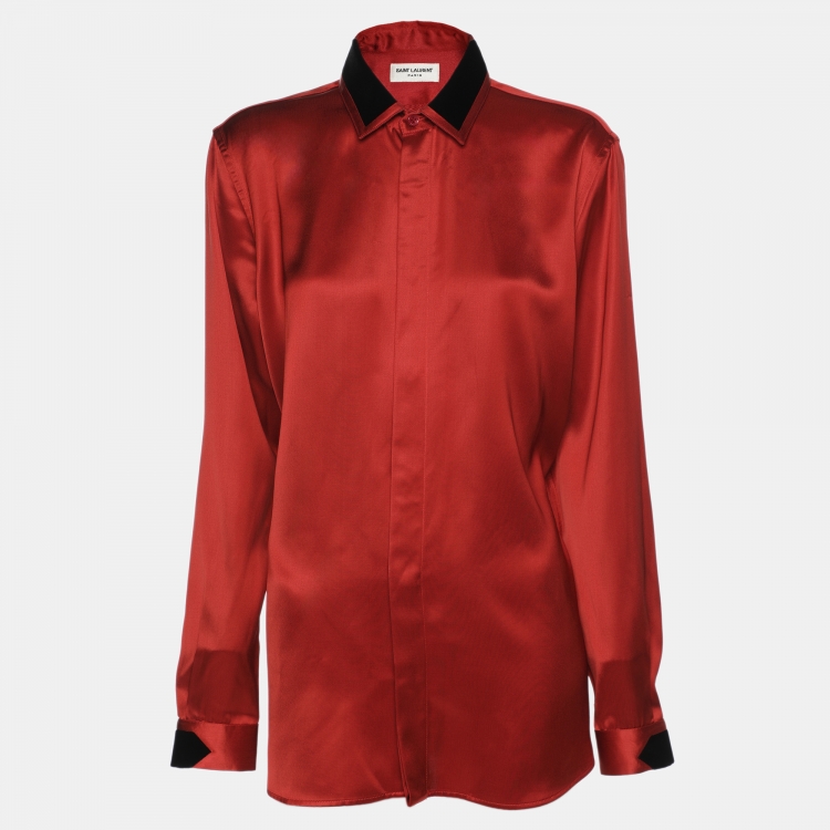 Pre Owned قميص سان لوران أحمر فيسكوز بأكمام طويلة مقاس كبير