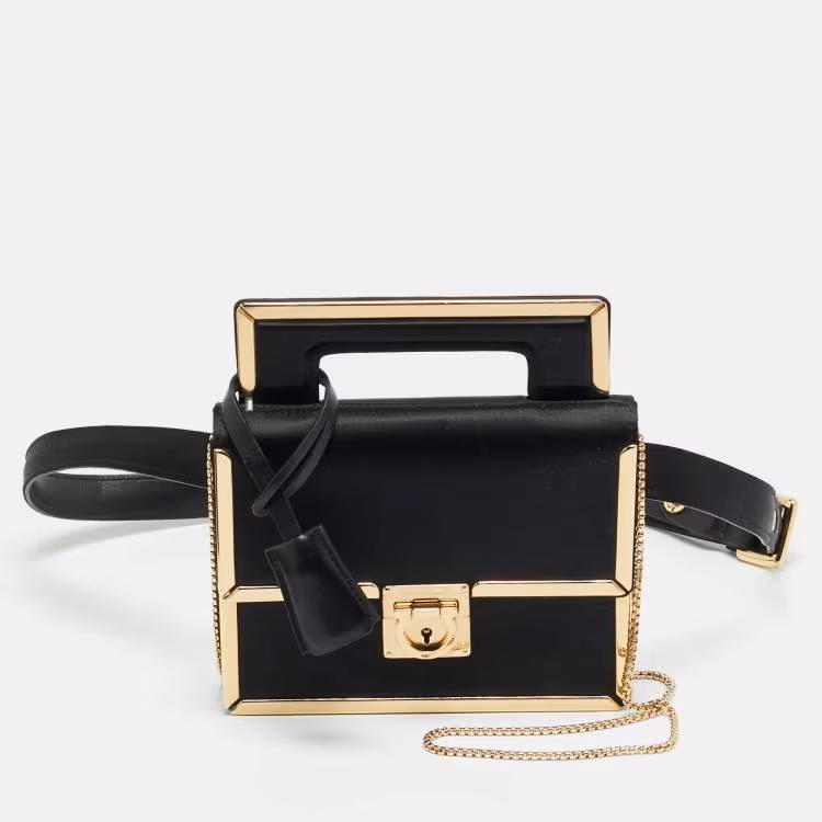 حقيبة سالفاتوري فيراغامو آيلين إطار ساتان أسود سلسلة/حزام