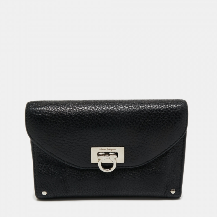 Salvatore Ferragamo Black Grained Leather Gancini Trifolfd Wallet