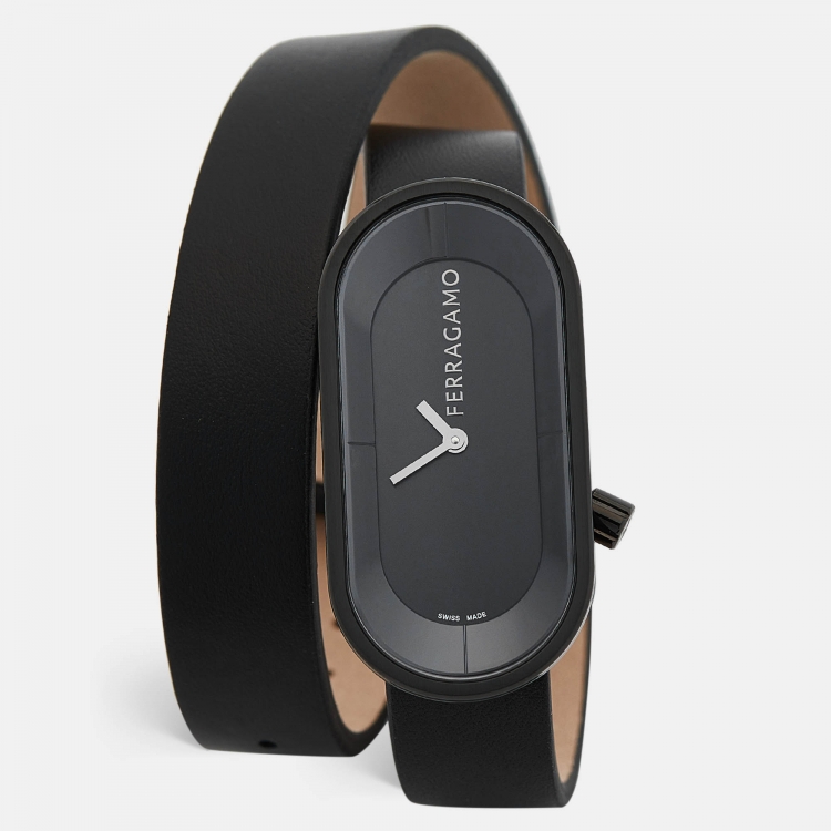 Salvatore Ferragamo Black PVD Coated Stainless Steel Leather Curve SFK300423 Women's Wristwatch 23 mm