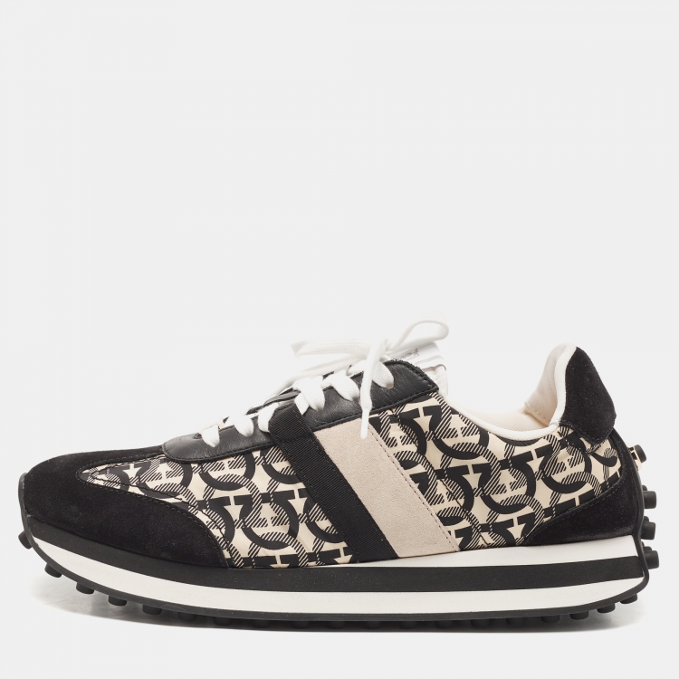 Pre Owned حذاء رياضي سالفاتوري فيراغامو غانتشيني نايلون وسويدي كريمي/ أسود بعنق منخفض مقاس 40