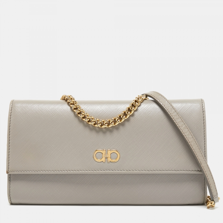 مملوكة مس�بقًا Salvatore Ferragamo Grey Leather Gancini Wallet On Chain