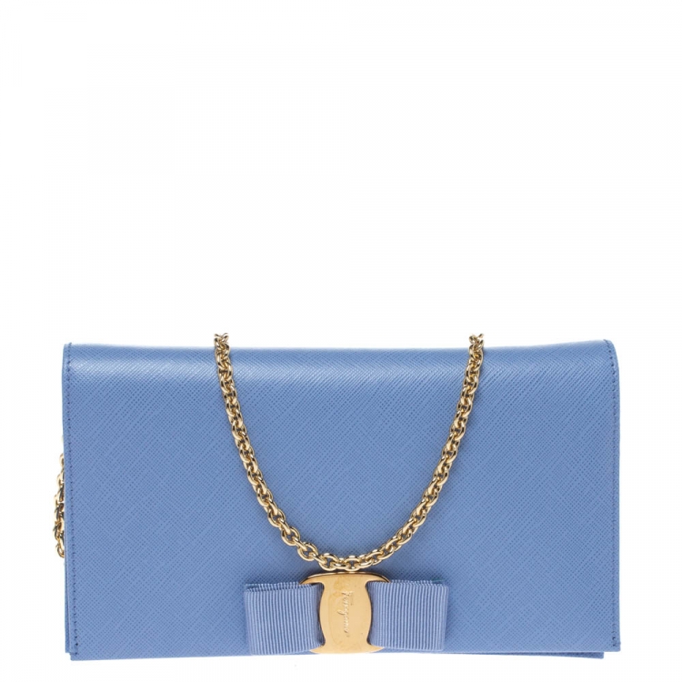 Salvatore Ferragamo Light Blue Leather Miss Vara Wallet On Chain