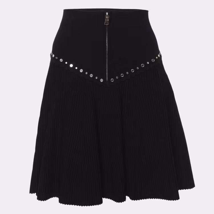 Pre Owned تنورة ساندرو قصيرة مزينة بحبكة مضلعة سوداء مقاس صغير