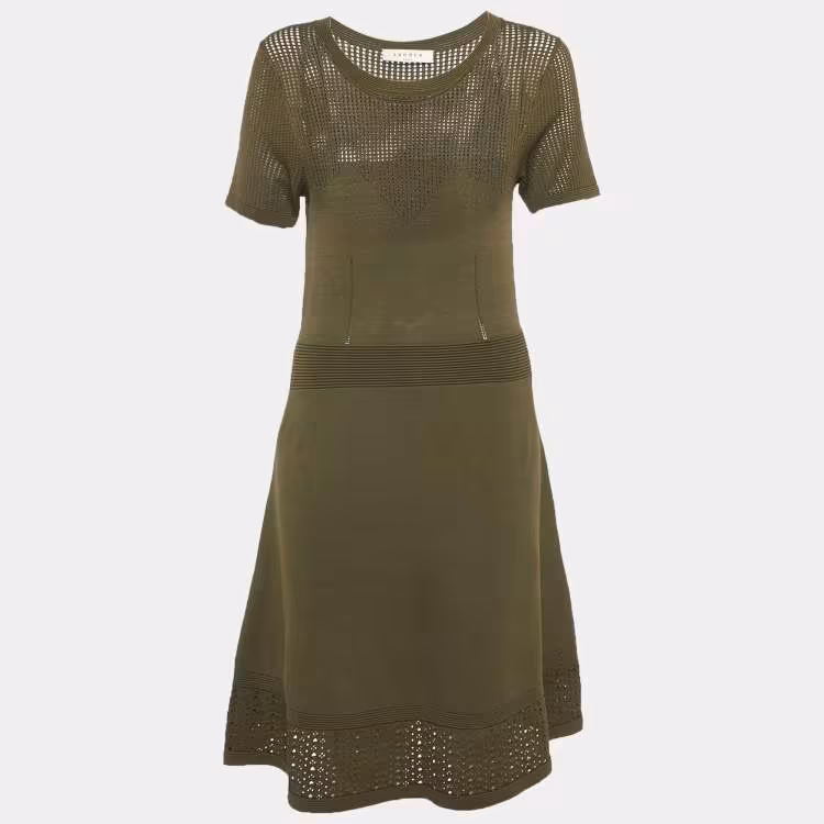 Pre Owned فستان ساندرو أخضر بحياكة مفتوحة وواسع قصير كبير