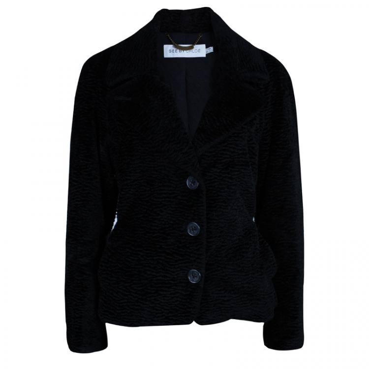 Pre Owned جاكيت بليزر سي باي كلوي ملمس بارز أسود S