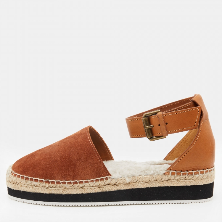 See by Chloe Brown Suede Glyn Espadrille Ankle Strap Sandals Size 39