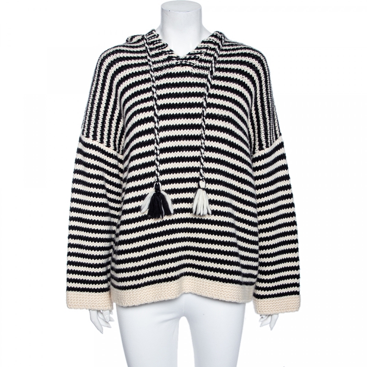 مملوكة مسبقًا See by Chloe Monochrome Striped Wool Knit Hooded Chunky Sweater M