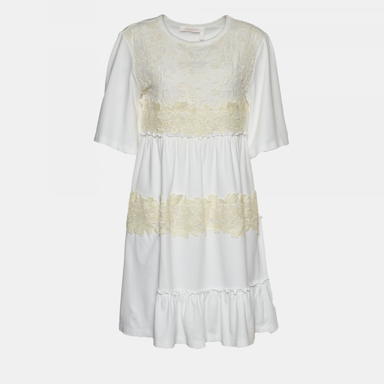 Pre Owned See by Chloe White Lace & Cotton Knit Mini Dress L