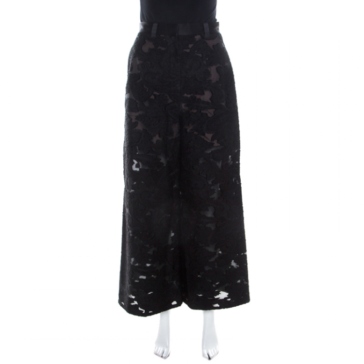 مملوكة مسبقًا بنطلون سيلف بورتريت خصر مرتفع واسع رباط و أورغانزا مطرز أسود S