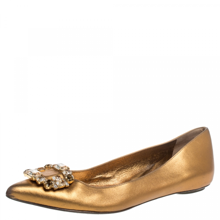 Pre Owned حذاء فلات باليه سيرجيو روسى زخرفة كريستال جلد ذهبى مقاس 39