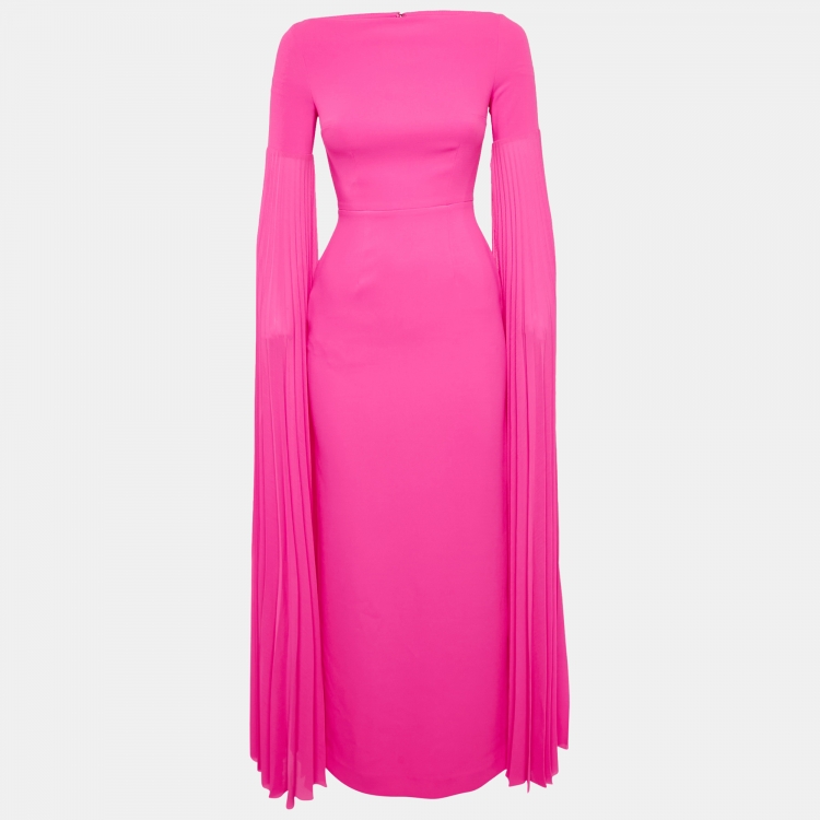 Pre Owned فسـتان مـاكسي سـولاس لنـدن غـرايس كـريـب فـوشي وردي مقــاس صغيــر - إكـسترا صغـير