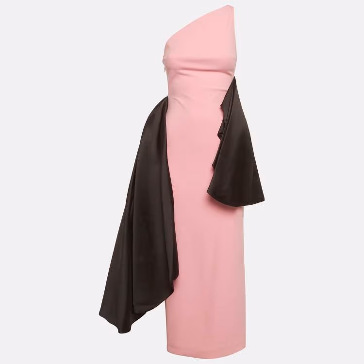 Solace London Pink Stretch Crepe Draped Calla Maxi Dress S