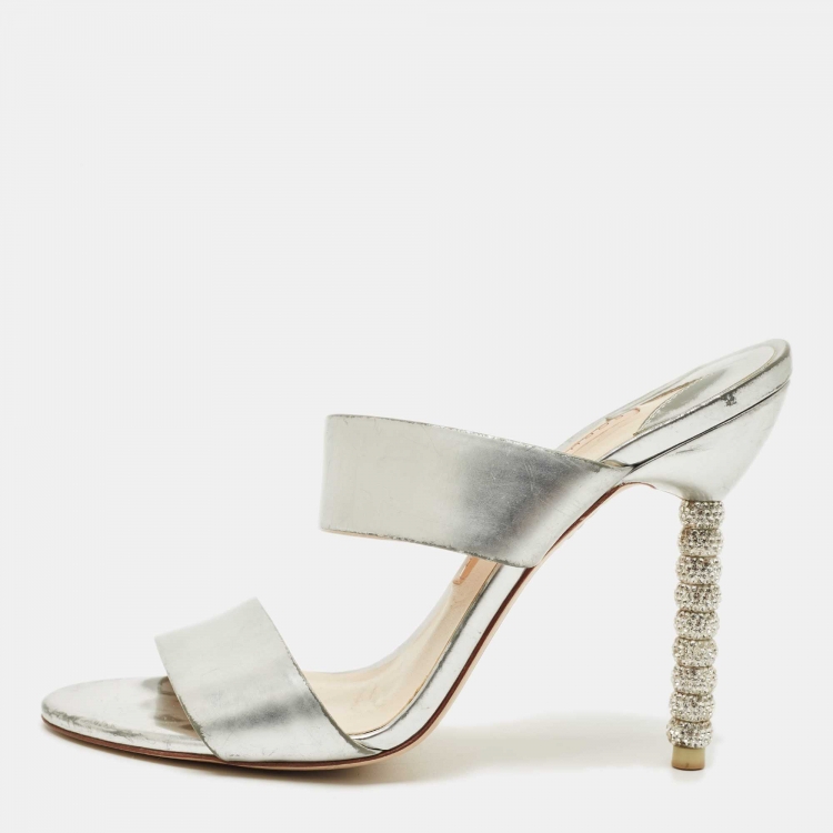Pre Owned صندل سلايد صوفيا وبتسر جلد فضي رقائق مزين بالكريستال كعب مقاس 37