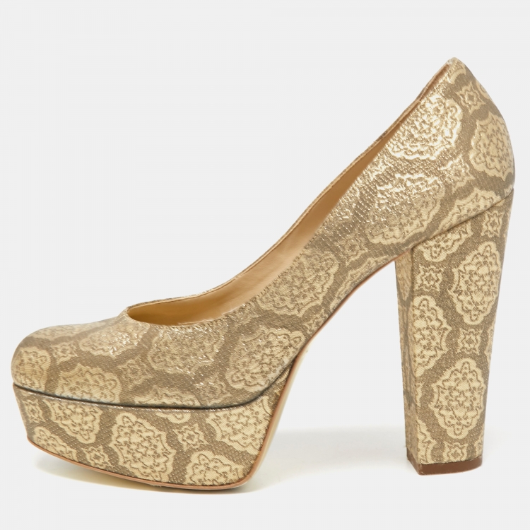 Stella McCartney Metallic Brocade Fabric Platform Pumps Size 38.5