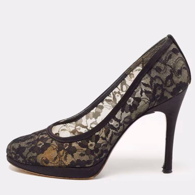 مملوكة مسبقًا حذاء كعب عالي ستيوارت وايتزمان دانتيل أسود مقدمة مستديرة نعال سميك مقاس 38.5