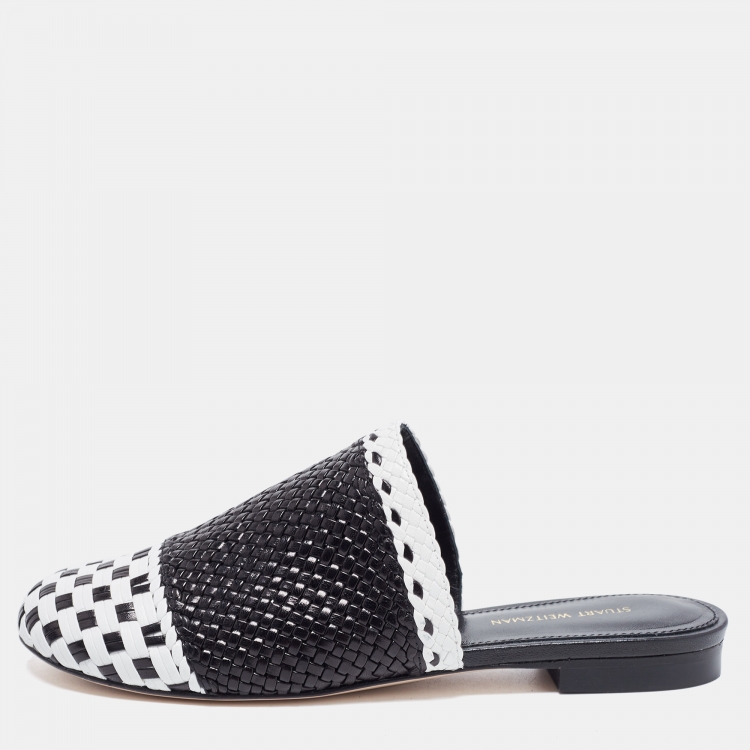 Stuart Weitzman Black/White Woven Leather Indiana Flat Mules Size 36