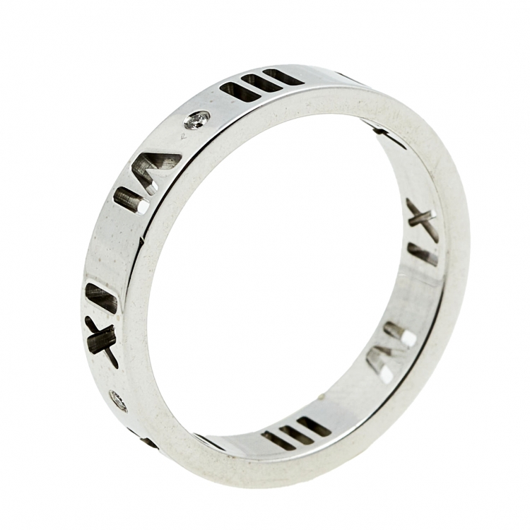Pre Owned خاتم تيفاني & كو. أطلس ألماس ذهب أبيض عيار 18 بحلية بأرقام رومانية مقاس 49