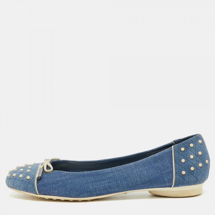 مملوكة مسبقًا حذاء باليرينا دودز قماش الدنيم الأزرق والسويدي مقاس 38