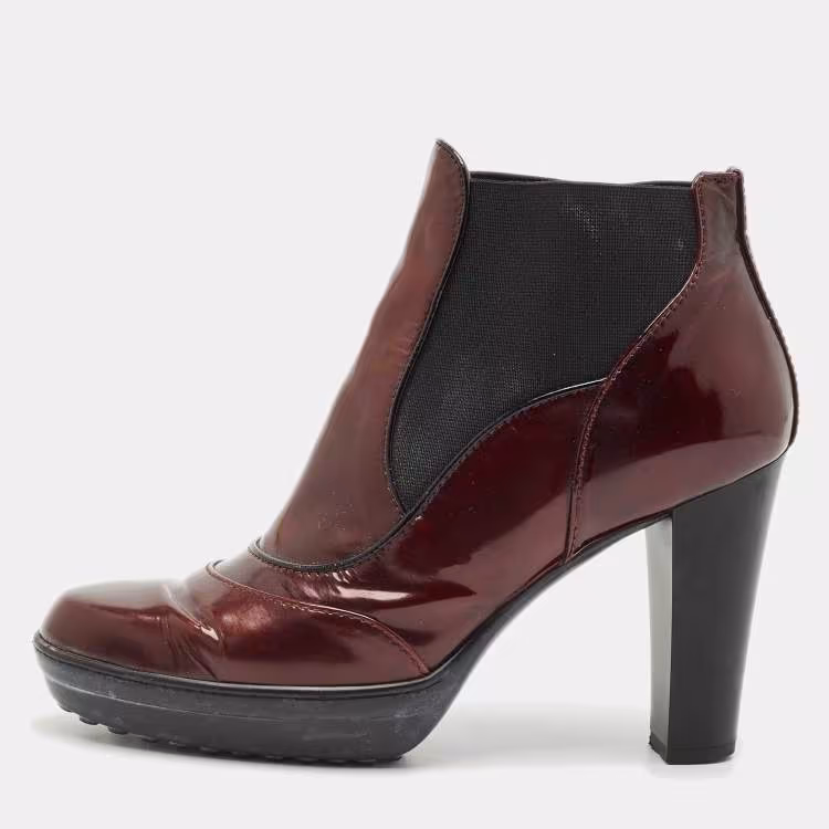 Pre Owned بوت للكاحل تودز جلد أسود نعل سميك مقاس 36.5