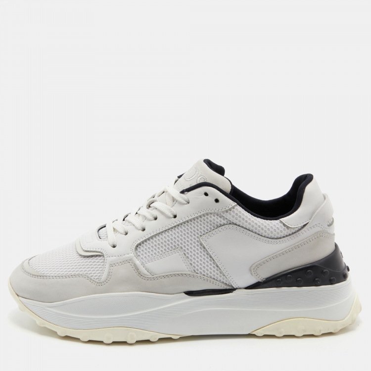 Pre Owned Tod's White/Black Mesh and Leather Low Top Sneakers Size 39.5