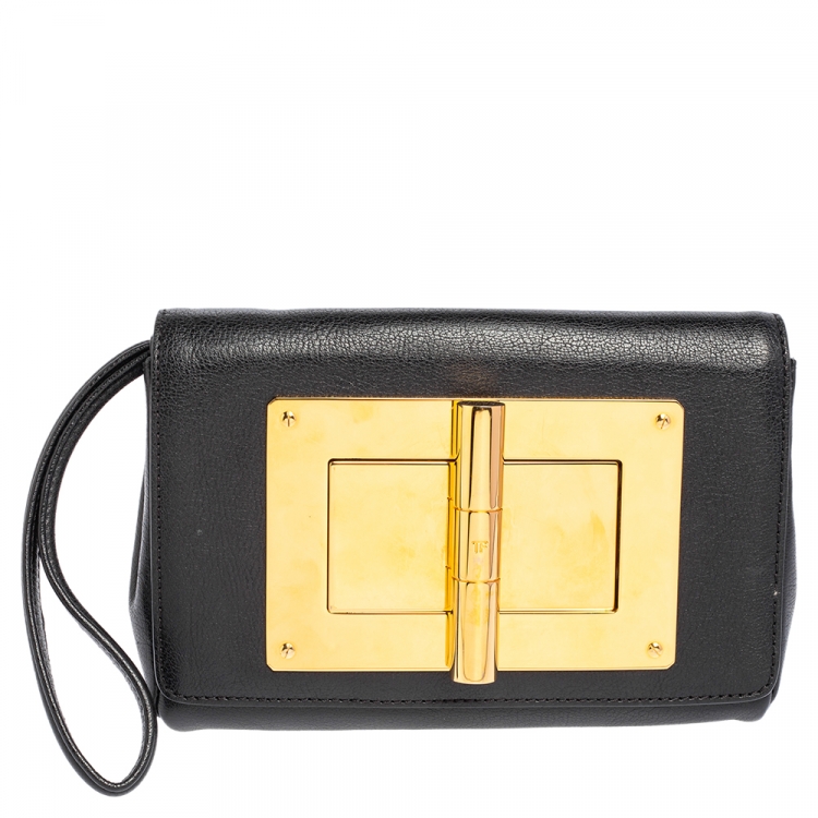 مملوكة مسبقًا حقيبة كلتش توم فورد ناتاليا جلد أسود ذات حمالة معصم