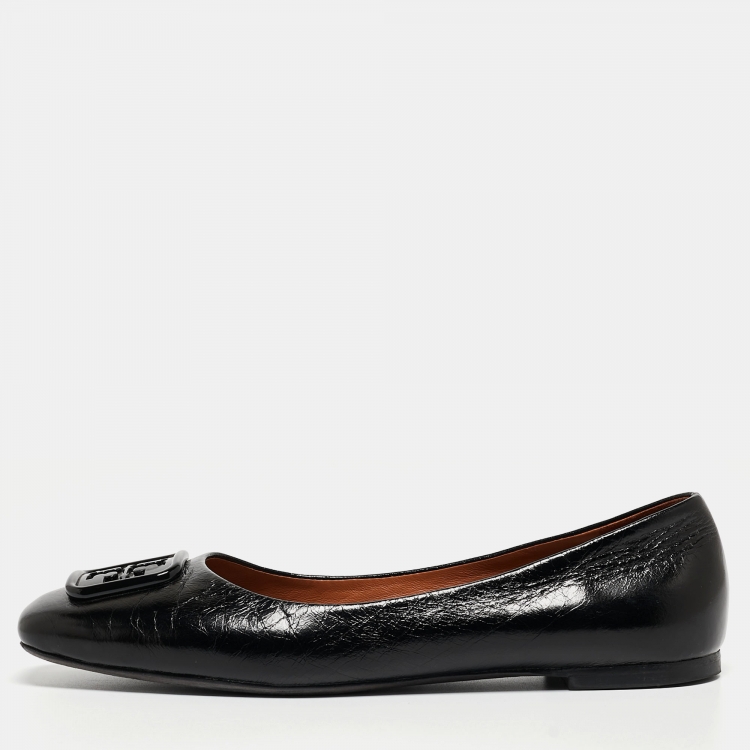 Tory Burch Black Leather Geogia Ballet Flats Size 39