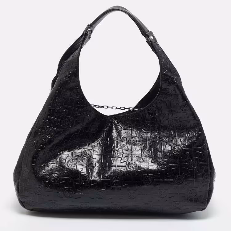 Pre Owned حقيبة توري برش دافينا جلد منقوش بالشعار أسود هوبو