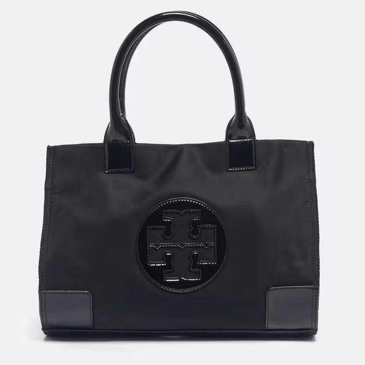 حقيبة يد توري برش إيلا كبيرة جلد لامع ونايلون أسود