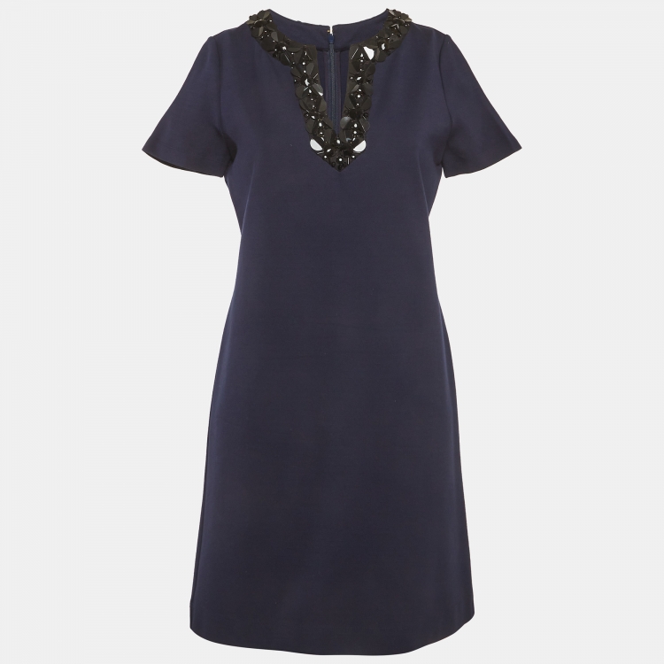 مملوكة مسبقًا فستان توري بورش كحلي بترتر تفصيل جيرسي قصير صغير