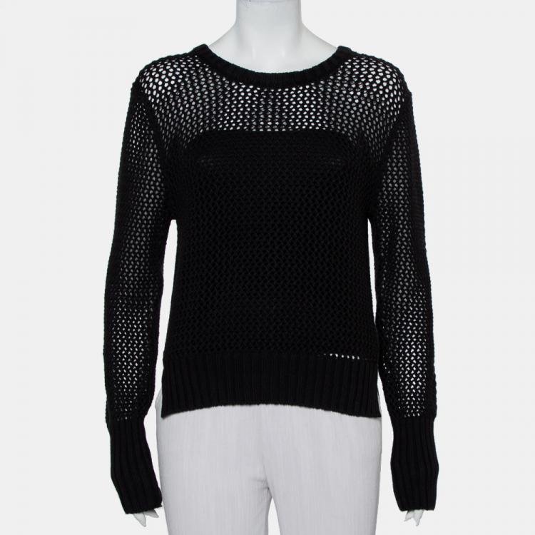 Pre Owned بلوفر أنكونديشنال تريكو شبك قطن أسود بسحاب مقاس متوسط - ميديوم