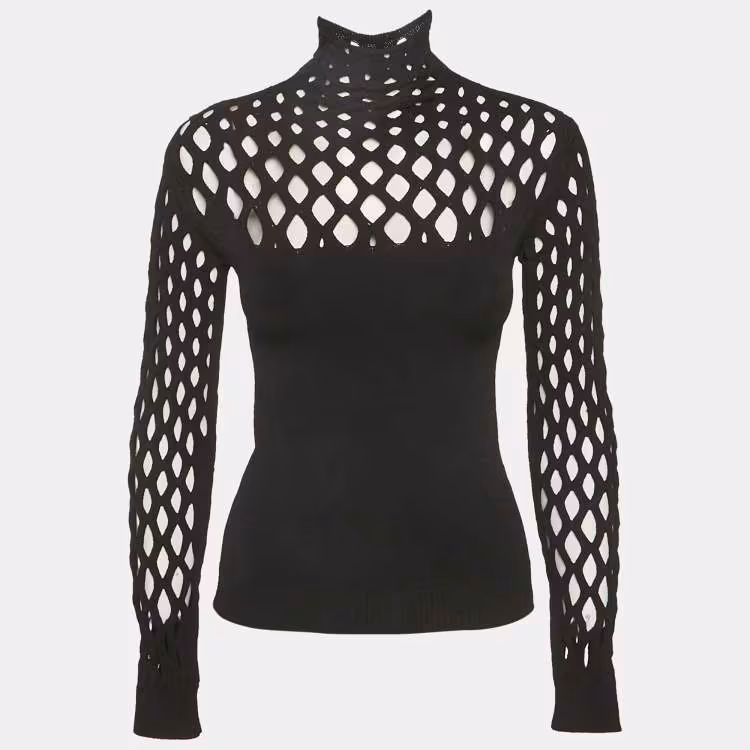Pre Owned كنزة فالتينتو شبك مطاطي محبوك سوداء بحجم متوسط
