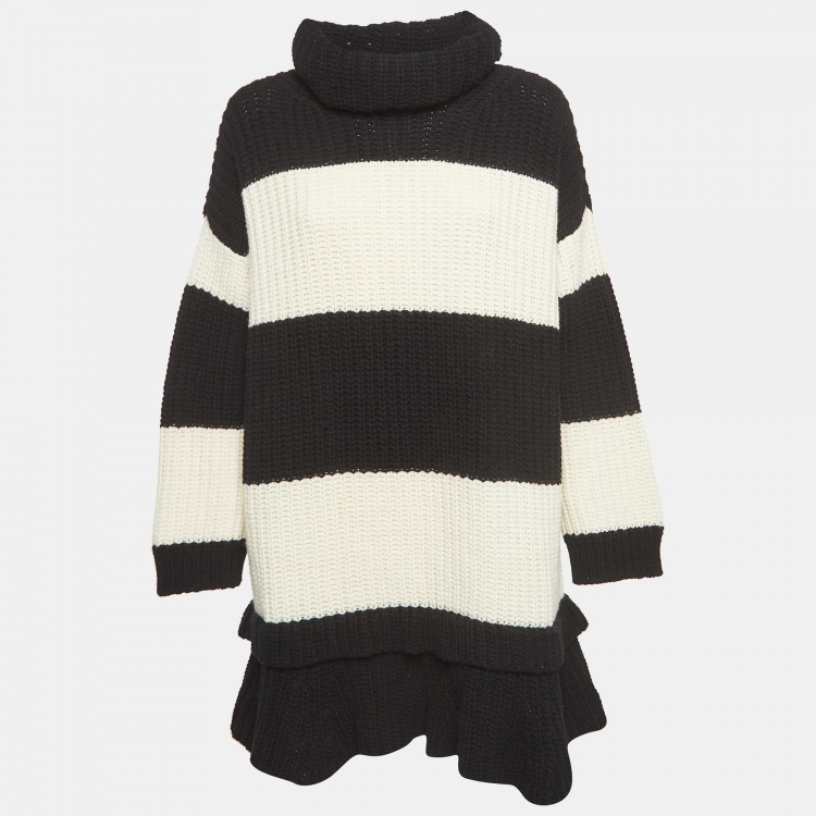 مملوكة مسبقًا Valentino Black/White Stripe Wool Knit Turtleneck Mini Dress S
