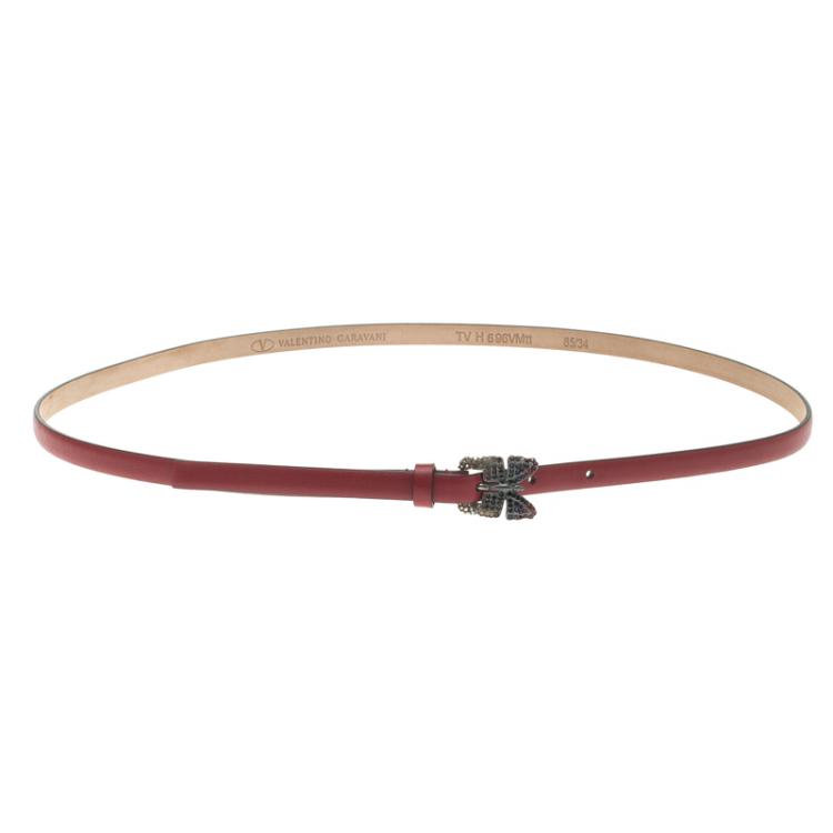 Pre Owned حزام سكيني فالنتينو إبزيم بنقوش فراشة مرصع كريستال جلد عنابني 85 سم