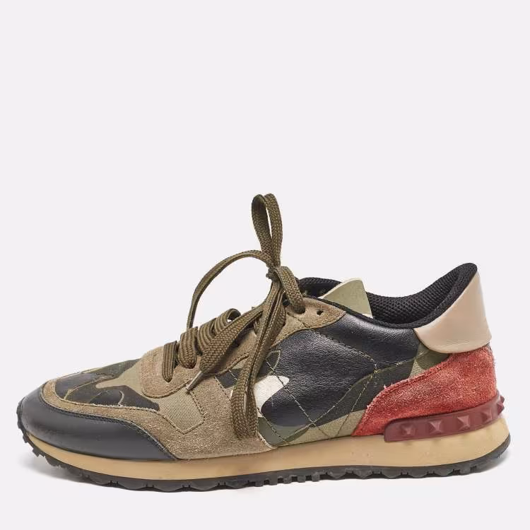 مملوكة مسبقًا حذاء رياضي فالنتينو روكرانر جلد مموه متعدد الألوان مقاس 39.5